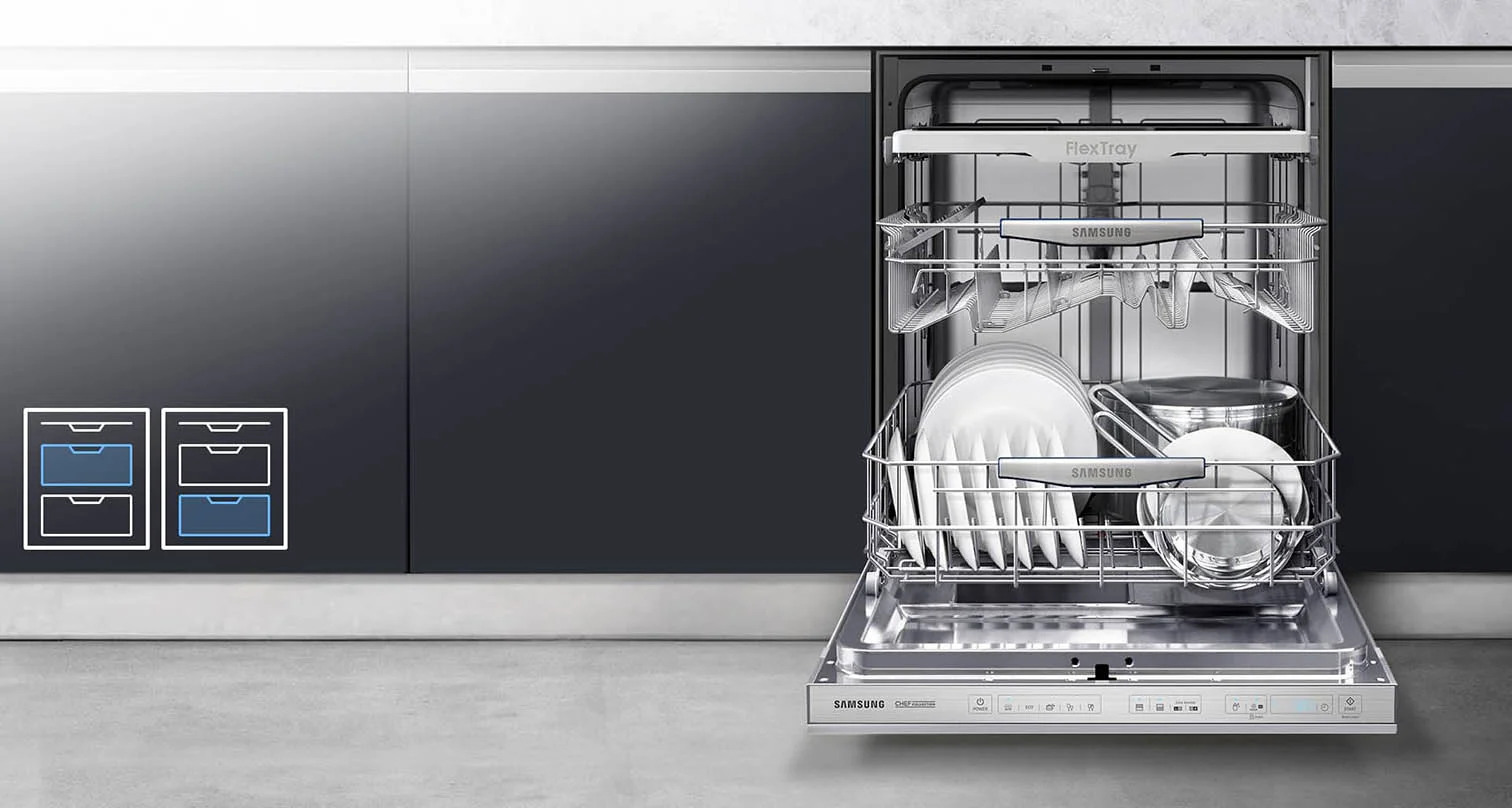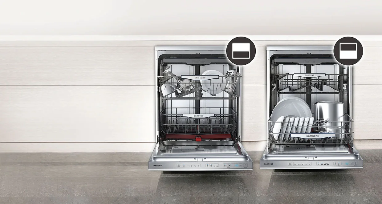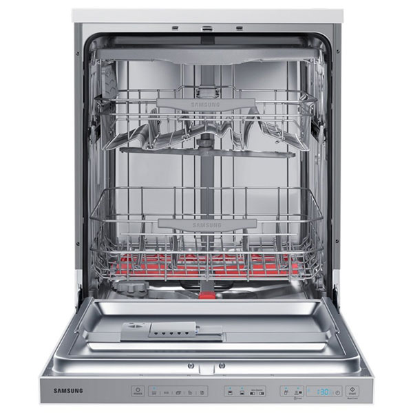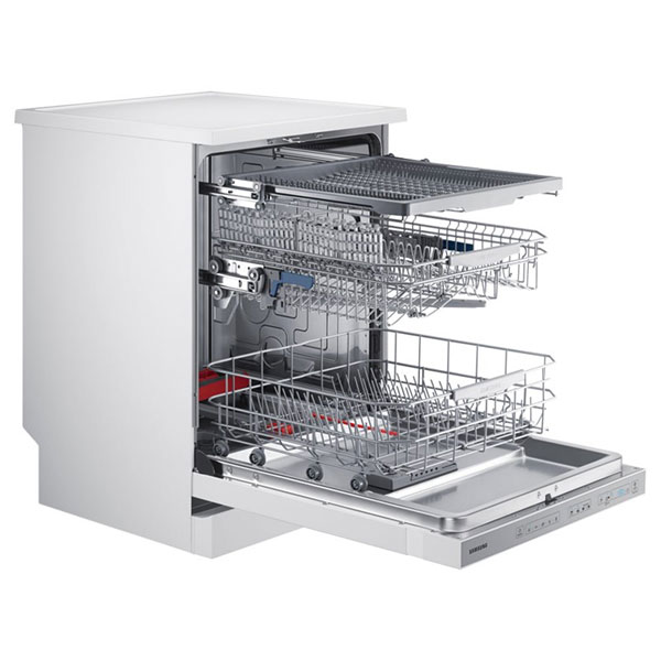 حتی بلندترین و بزرگترین اقلام خود را به راحتی با طراحی انعطاف پذیر و کاربری آسان که فضای بیشتری را در قفسه بالایی ایجاد می کند ، تمیز کنید. با فشار ساده یک اهرم می توانید ظروف بیشتری را با فضای کافی برای تنظیمات 15 مکان در جای خود قرار دهید. Flex Tray™ امکان بارگیری آسان با قلابهای بزرگ را فراهم میکند تا به فضای کارد و چنگال برای تمیز کردن کمک کند. سینی خم شونده به راحتی جدا می شود ، وقتی کارد و چنگال شما تمیز است ، به سادگی سینی را بلند کرده و داخل کشو خالی کنید. طراحی ممتاز که به طور یکپارچه با مبلمان آشپزخانه شما هماهنگ می شود تا خانه شما را با ظاهری هماهنگ و مدرن جلوه دهد. دستگیره فرورفته آن ظاهری تمیز و صاف به جلو می دهد و به دلیل اینکه دستگیره ای بیرون زده نیست ، حرکت در آشپزخانه را نیز آسان می کند. ماشین ظرفشویی سامسونگ 8550 14 نفره 3 طبقه مدل DW60K8550FW با قفسه بالایی که برای قرار دادن ظروف پخت و پز بلند و بزرگ تنظیم می شود ، انعطاف پذیری نهایی را برای تمیز کردن همه قابلمه ها ، تابه ها و ظروف نقره ای شما دارد. با ماشین ظرفشویی Samsung WaterWall™ DW60K8550FW از بارگیری و تخلیه بی دردسر لذت ببرید. قفسه کشویی بالا برای راحتی بیشتر و تکان خوردن کمتر ؛ به داخل و خارج میشود. این قفسه چه تحت فشار قابلمه ها و تابه های سنگین باشد و چه تحت فشار بارهای ظریف مانند ظروف شیشه ای ایستاده قرار گیرد، قفسه به آرامی خارج می شود.