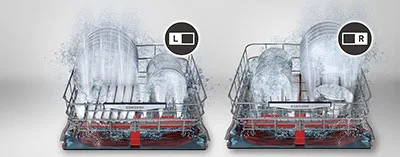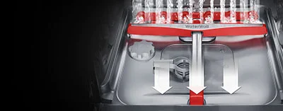 قابلمه ها و تابه های پخته شده روی مواد غذایی را می توان به راحتی با استفاده از عملکرد تقویت منطقه شست. حتی اگر می خواهید ظروف معمولی را همزمان بشویید ، می توانید فقط نیمی از منطقه را تقویت کنید. فناوری WaterWall™ همه ظروف را در هر گوشه ای تمیز می کند ، بدون اتلاف وقت یا آب برای قبل از شستشو. با ایجاد دیواره ای از آب با فشار بالا که مکان های سخت در دسترس را در قفسه پایینی، جایی که اغلب کثیف ترین ظرف را در آن قرار می دهید ، می پوشاند ، عملکرد تمیزکاری انقلابی را ارائه می دهد. در واقع این تکنولوژی همراه با یک اسپری مخصوص، آب را با فشار بسیار بالایی بر روی ظروف می پاشد و با حرکت آب به جلو و عقب سبب می شود تا ظروف هر چه بهتر و با کیفیت تر شسته شوند. فناوری انقلابی WaterWall™ سامسونگ ، ظرفشویی را دوباره ابداع می کند. برخلاف ماشین ظرفشویی های معمولی ما ، خط WaterWall™ از یک دیواره جاروب کننده قدرتمند آب برای تمیز نگه داشتن ظروف فوق العاده استفاده می کند.