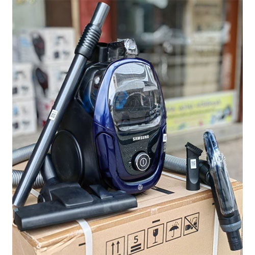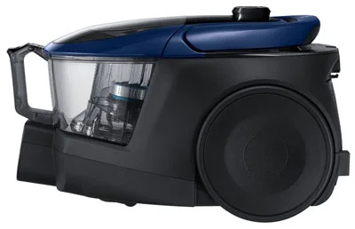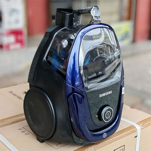 در ابندا و قبل از شروع درباره قابلیت ها و کارایی های جاروبرقی سامسونگ به شرح خصوصیات ظاهری آن میپردازیم. این دستگاه زیباست و با نگاه ساده به آن به وضوح متوجه خواهید شد. برای ساخت بدنه اش از بهترین مواد اولیه استفاده شده و کالایی با کیفیت و مقاوم تولید شده است. رنگ با ترکیب آبی و مشکی دارد. ترکیب رنگی زیبا که باب سلیقه اکثر افراد است. جاروی سامسونگ رویه پلاستیکی اما مقاوم و از نوع فشرده شده در آن به کار رفته است. در برابر خط و خش مقاوم می باشد و به دلیل استفاده از پلاستیک در بخش بیشتر بدونه بیرونی دستگاه وزن متناسبی دارد. ابعاد این جاروبرقی به گونه ای است که جای کمی را به خود اختصاص میدهد و ابعاد جمع و جور دارا است. از دیگر ویژگی هایی که برای بخش ظاهر و بدنه آن می توان نام برد داشتن دسته در بالا جهت جا به جایی و حمل است. دسته ای که برای جاروبرقی سامسونگ ساخته شده است کار حمل آن را راحت کرده و برای جا به جایی بین طبقات و بلند کردن از زمین بسیار کاربردی میباشد. وزن کم و حدود ۴.۸ کیلوگرمی جاروبرقی از دیگر مزیت های آن است. سامسونگ دسته این دستگاه را بر اساس استاندارد ساخته و به فکر راحتی و سلامت کاربران بوده است. لوله تلسکوپی مقاوم که از جنس استیل ضد زنگ میباشد و قابلیت تغییر ارتفاع دارد تا با این ویژگی کاربر بر اساس قد خود ارتفاع لوله تلسکوپی را تنظیم کند و در زمان کار جاروکشیدن دچار درد کمر و ... نگردد. بر روی دسته کنترل نیز نصب میباشد و با آن میتوان سریع قدرت مکش دستگاه را تنظیم کرد. علاوه بر آن چه گفته شد جاروبرقی مخزن دار سامسونگ برای حرکت داده شدن بر روی زمین دارای چرخ هایی است. اندازه مناسب و حرکت روان چرخ ها روند کار با دستگاه را بیش از پیش عالی کرده اند. روی انواع سطوح حرکت نرمی دارند و بر روی سطوح سخت هم چون سرامیک خط ایجاد نمیکنند و تمیزکاری بدون آسیب را برایتان انجام خواهد داد. مخزن موجود در این جاروبرقی جنس پلاستیکی و شفاف دارد و با دسته نصب شده بر روی آن میتوان از بدنه بیرون کشید و برای تخلیه و شستشو با خود حمل کرد. کار جداسازی مخزن از بدنه به سادگی انجام میشود و تنها با فشردن یک کلید انجام میگردد.