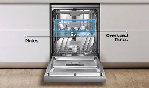 با ظرفشویی سامسونگ 5070 نگران شستن کارد و چنگال هایتان نباشید، چرا که یک قفسه ی مناسب برای همچنین ظروفی در این ظرفشویی تعبیه شده است. قفسه انعطاف پذیر 3rd Rack یک فضای اختصاصی را در قسمت بالا برای وسایل کوچک و سبک، مانند کارد و چنگال فراهم کرده است. این قفسه ایمنی و تمیزی خارق العاده ای را برای ظرف هایتان به وجود می آورد. در نتیجه با داشتن این قفسه انعطاف پذیر در این ظرفشویی کارد و چنگال هایتان به راحتی تمیز می شوند.