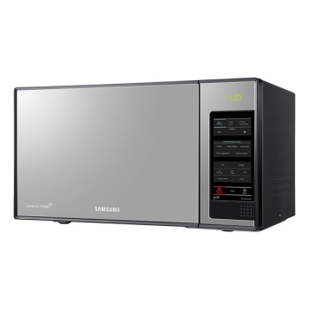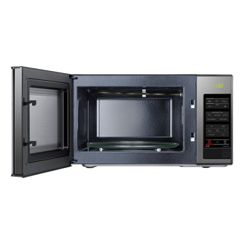 این پایه حمل وزن می کنند و از بروز آسیب ها هم پیشگیری خواهند کرد. درب کالا به سمت چپ باز می شود که از نوع آیینه ای هم است. بر روی درب نام سامسونگ با زیبایی خاصی حکاکی شده است. رنگ بدنه از مسکی بوده اما درب حالتی نقره ای دارد که تصاد خاصی را به وجود آورده است. در قسمت راست مایکروویو سامسونگ پنل تنظیمات همراه با عبارت هایی وجود دارد. این پنل کارهای انتخاب برنامه، تنظیم دما، تنظیم زمان و … را انجام می دهد. صفحه نمایش هم که در این قسمت وجود دارد تمامی این تنظیمات را نمایش می دهد. مایکروویو سامسونگ 402 مدل MG402MADXBB ابعاد ویژه ای هم دارد. وزن 19 کیلوگرم، ارتفاع 313 میلیمتر، عمق 392 میلیمتر، پهنا 600 میلیمتر در تظر گرفته شده است.