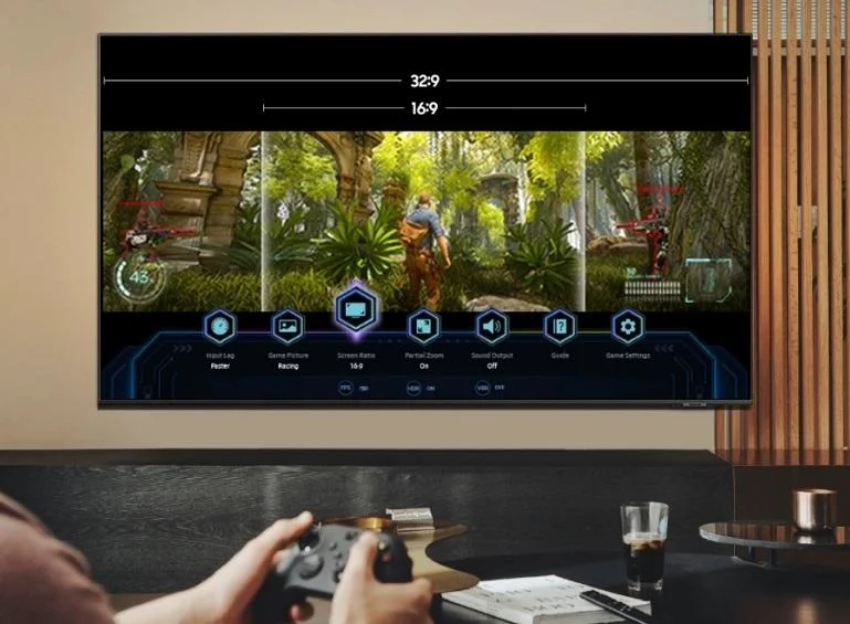 این ویژگی به کاربران اجازه می دهد تا از صفحه نمایش های با نسبت تصویر 21:9 و 32:9 تا حداکثر نمای را گسترش دهند تا به کاربران در تسلط بر بازی های شدید کمک کند. منوی Game Bar امکان تنظیم فوری پارامترهایی مانند نسبت ابعاد ، بررسی تاخیر ورودی ، FPS ، HDR ، تنظیمات هدست بی سیم و موارد دیگر را با ناوبری یک طرفه فراهم می کند. با گسترش قاب به حداکثر نمای از صفحه نمایش با نسبت ابعاد 21:9 و 32:9، بازی های شدیدتری را برنده شوید. منوی Game Bar با یک کلید ناوبری به راحتی قابل دسترسی است که به شما امکان می دهد فوراً پارامتر هایی مانند نسبت تصویر ، بررسی تاخیر ورودی ، FPS ، HDR ، تنظیمات هدست بی سیم و موارد دیگر را دوباره تنظیم کنید.