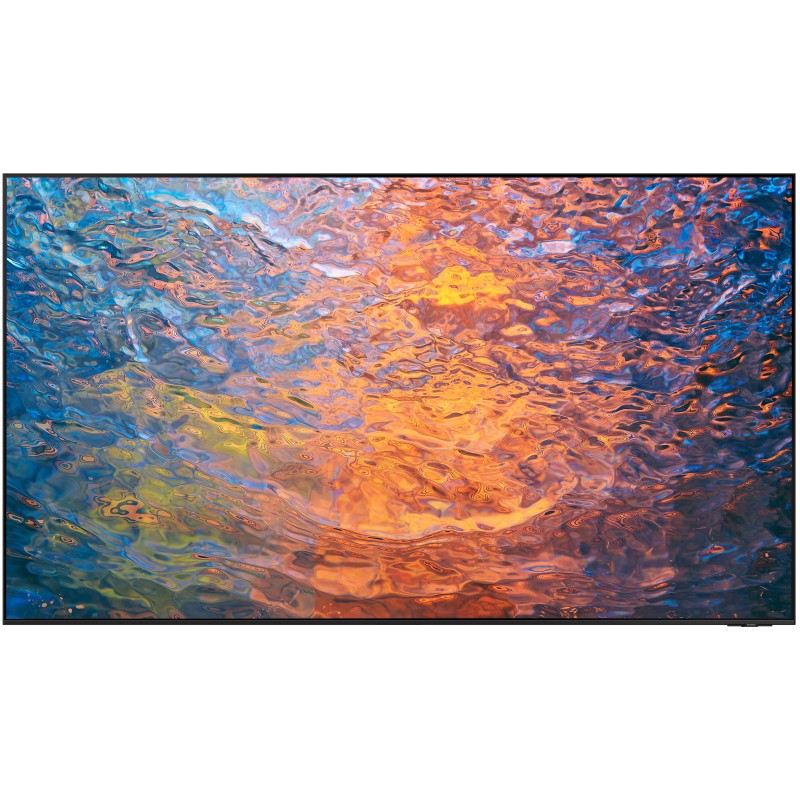 سامسونگ برای دوام بیشتر محصول از بدنه ی پلاستیک فشرده استفاده نموده است. این نوع پلاستیک ABS بوده که در برابر ضربه، برخورد و آسیب ها به خوبی مقاومت نشان می دهد. همچنین مناسب ترین وزن را برای جا به جایی و حمل ممکن ایجاد کرده است. صفحه نمایش تلویزیون سامسونگ از NEO QLED تهیه شده که از صفحه های پرطرفدار محسوب می شود. اندازه ی 75 اینچ صفحه می تواند محتوا و صحنه ها را بزرگ و دیدنی نمایش دهد. دور تا دور صفحه لبه ای باریک جهت محافظت وجود دارد که توانسته در طراحی زیبا هم تاثیر گذار باشد. پایه ی بزرگ وسط بدنه بدون ایجاد مشکل می تواند وزن کل تلویزیون را تحمل کند. پنل پشتی مجموعه ای از پورت های ارتباطی، درگاه ها، کابل های اتصال دهنده را در خود قرار داده است. از این رو ظاهر محصول همیشه مرتب و با نظم کامل دیده می شود.