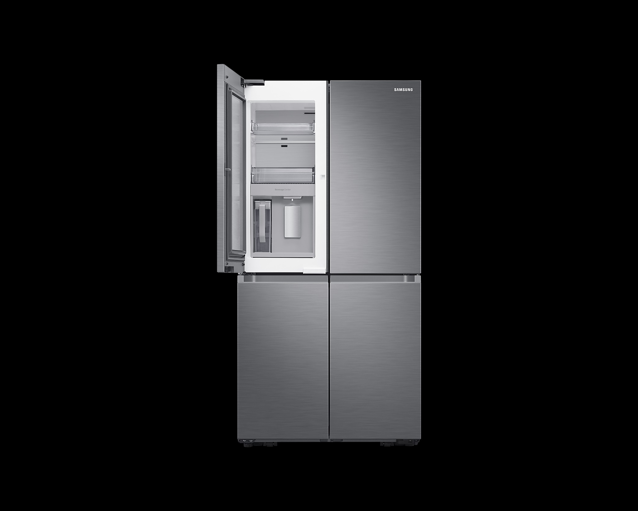 جنس بدنه از استیل ضد خش بوده که مقاومت دستگاه را در برابر آسیب ها بالا می برد. این یخچال از 4 درب بهره برده که استفاده از یخچال را بسیار راحت می کند. درب ها به سمت جپ و راست باز می شوند. بخش یخچال دارای دو درب و فریزر هک دو درب دارد. شرکت سامسونگ قسمتی از یخچال را به عنوان هوم بار تعیین کرده است. هوم بار یک نوع دسترسی سریع بوده که برای آب و … محل مناسبی است. دسته های ساخته شده برای این وسیله مخفی بوده و در کنار درب ها وجود دارد. یخچال فریزر 4 درب سامسونگ RF65 طراحی داخلی بسیار استانداردی دارد. در قسمت یخچال سامسونگ 2 عدد کشو چسبیده به هم تعیین کرده است.