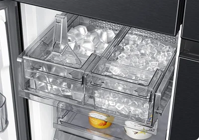 یخچال RF71 بر روی بدنه اش آب سردکن مشاهده نمیکنید زیرا فاقد آب سردکن خارجی است. به یخ ساز اتوماتیک مجهز بوده و یخساز از نوع دوگانه دارد. با این قابلیت میتواند دو نوع یخ یعنی به صورت مکعبی و خرد شده تولید کند. این یخچال سامسونگ دارای سیستم آب سردکن داخلی است. این آب سردکن داخلی فیلتر تصفیه آب چند مرحله ای دارد. تا آب سالم و بدون بو را در اختیارتان قرار دهد. مخزن آب به صورت داخلی طراحی گردیده و فضای داخلی یخچال را کم نمیکند.