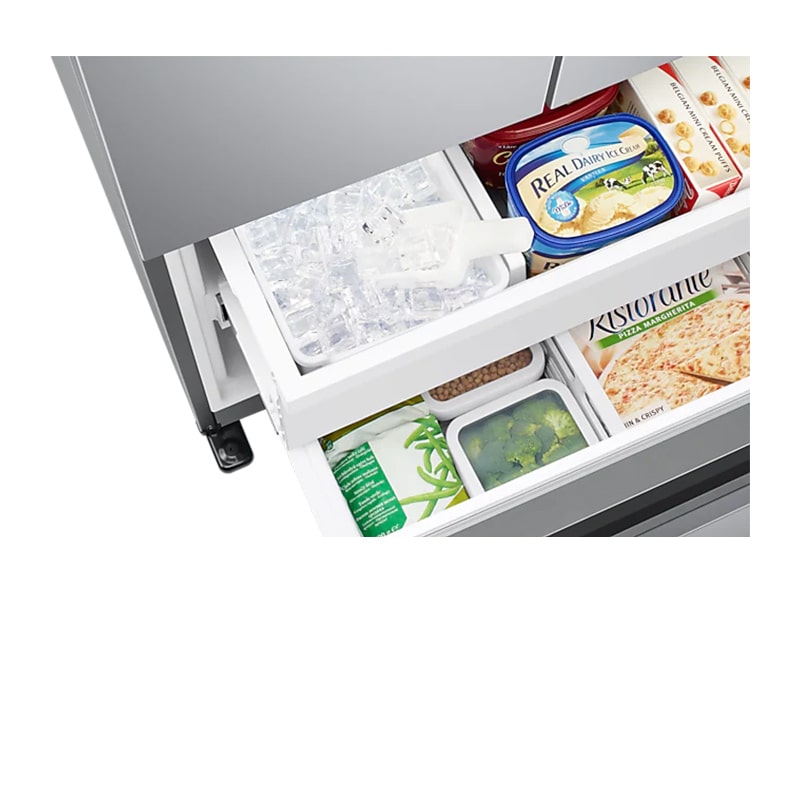 این طبقه ها با حجم زیاد خود فضای بزرگی برای قرار دادن مواد هستند. طراحی داخلی درب ها نیز شامل 6 قفسه می باشد. فریزر یخچال فرنچ سامسونگ RF25 تنها از 2 کشو ساخته شده اند. اما کشوها حجم بزرگی دارند و می توانند مواد زیادی را در خود به راحتی جای دهند. شایان ذکر است که تمامی قفسه، مشو و طبقه ها از جنس شیشه و پلاستیک بسیار اصلی و محکم هستند. پس می تواند وزن قابل توجهی را بدون ایجاد مشکل نگهداری کنند.