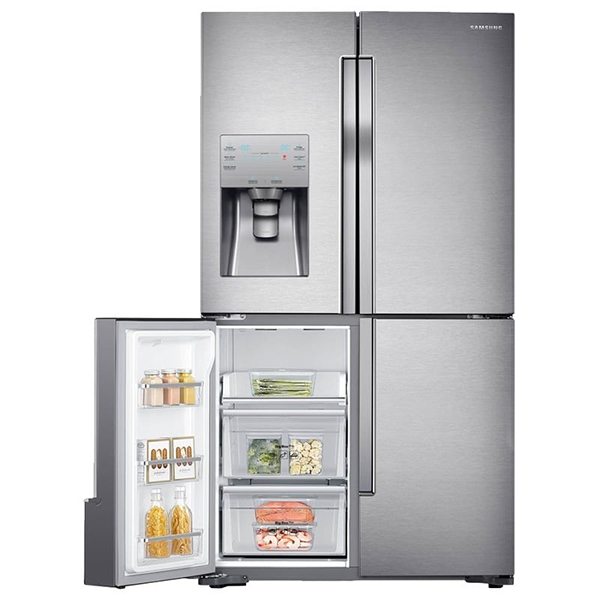 یخچال ساید بای ساید سامسونگ رومانو 34 فوت 4 درب مدل RF56N9040SL جزء خوش طرح ترین و با کیفیت ترین یخچال های برند سامسونگ می باشد که با رنگ زیبای نقره ای وارد بازار شده است و توانسته در همان دید اول توجه عده زیادی را به سوی خود بکشاند. این یخچال منحصر به فرد دارای امکانات و کارایی های فوق العاده ای می باشد و تا حد چشمگیری می تواند نیاز های یک کاربر را برآورده سازد. ظرفیت این یخچال ساید بای ساید برابر 564 لیتر می باشد که مانند تمامی یخچال های موجود در بازار قسمت اعظم را برای یخچال و مابقی را برای فریزر در نظر گرفته اند. اگر شما به نمای داخلی این یخچال نگاهی بندازید شاهد تعداد زیادی قفسه ها و طبقه ها خواهید شد که می توانند حجم کثیری از مواد غذایی را در خود جای دهند. موتور این یخچال از نوع اینورتر دیجیتال می باشد ، که از نظر طول عمر دستگاه ، کاهش مصرف انرژی و میزان صدای پنخش شده بسیار عالی عمل می کند. همچنین وجود فناوری Metal Cooling در این یخچال به گونه ای عمل می کند که در انتشار هوای خنک در درون یخجال به طور مساوی دخالت می کند و از انتشار بوی بد جلوگیری می کند. وجود قابلیت آبریز و یخ ساز سبب می شود تا شما در هر زمانی که می خواهید از آب سرد بهره مند شوند. وجود قابلیت Cool Select Zone سبب می شود تا شما بتوانید دمای یخچال را بسته به نوع مواد غذایی تنظیم نمایید. برای آشنای بیشتر با یخچال ساید بای ساید سامسونگ رومانو 34 فوت 4 درب مدل RF56N9040SL شما را به ادامه مطلب دعوت می کنیم.