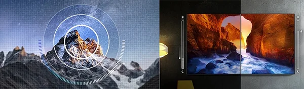 در این تلویزیون کیولد سامسونگ همراه با Quantum Dot، فناوری های دیگری نیز وجود دارند که باعث می شوند تا عمق رنگ ها و بافت ها افزایش پیدا کند. عمق رنگ ها در این دستگاه به 8 بیت می رسد اما با استفاده از فناوری و تکنولوژی FRC به 10 بیت افزایش پیدا کرده است. این دو فناوری باعق شده اند تا رنگ ها در بهترین حالت خود با بیشترین میزان درخشندگی و کنتراست نمایش داده شوند. همچنین از مزیت های دیگر این تلویزیون این است که شاخص کیفیت تصویر آن در محدوده بسیار خوب قرار دارد. PQI یا همان شاخص کیفیت در تلویزیون QLED سامسونگ مدل 65Q70T در عدد 3400 خلاصه شده است که به معنی وجود کنتراست بالا و نمایش ریز ترین جزئات در آن تصویر می باشند.