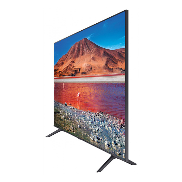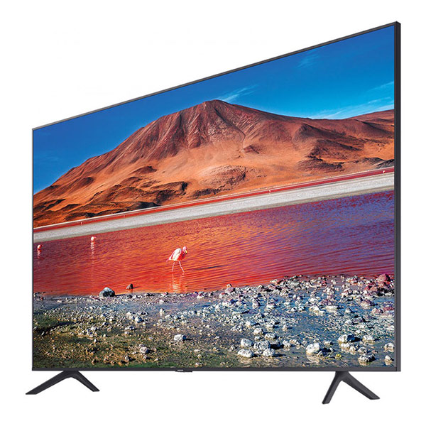 تلویزیون یکی از قسمت های مهم و اصلی در هر فضایی از محیط زندگی به حساب می آید که بی شک بدون آن دیزاین و دکوراسیون داخلی منزل شما ناقص به نظر می آید. پس می توان گفت تلویزیون از آن دسته وسایلی است که بیشتر از هر وسیله ایی به چشم می آید به همین دلیل است که باید محصولی را انتخاب کنیم که بتواند نمای زیبا و شیک را به اتاق نشیمن ببخشد. اتاق نشیمن یکی از مهم ترین بخش های منزل هر فردی محسوب می شود از این رو بهتر است در هنگام انتخاب طراحی تلویزیون حساسیت لازم را به خرج دهید و نهایت دقت را به کار ببریم. امروزه با گسترش طیف های مختلفی از تلویزیون ها با طراحی گوناگون انتخاب مدلی شیک برای بیشتر افراد به چالشی بزرگ تبدیل شده است و اکثر خریداران تصور می کنند که برای ایجاد دکوراسیون نوین باید از مدل های عجیب و غریب استفاده کنند. اما کمپانی موفق سامسونگ در این زمینه توانسته است با طراحی های خلاقانه و کاربردی در عین سادگی تلویزیون های بی نظیری را با طراحی چشمگیر تولید و روانه عرضه بازار نموده است همراه با تلویزیون سامسونگ 65TU7100 نمای و دیزاین تازه و خارق العاده ای را به منزل خود بدهید. استفاده از طراحی فوق باریک Slim Design این ال ای دی دارای خطوطی باریک می باشد و فریم دستگاه طوری طراحی شده است که به مخاطب این حس را القا میکند صفحه نمایش بزرگتر از آن چیزی است که انتظار می رود. این سری همانند سری RU دارای پایه های شاخه ای شکل می باشد که از دوام و استحکام کافی برخوردار هستند ، این پایه ها به راحتی قابل جداسازی بوده و شما قادر خواهید بوود تلویزیون خود را جهت تغییر دکوراسیون منزل بر روی دیوار به صورت Wall Mount نصب کنید. البته باید گفت که وزنی را که برای این تلویزیون تعریف شده است برابر 20.9 کیلو گرم است و ابعادی برابر با عرض 1448.4 میلیمتر و ارتفاع 906.2 میلیمتر را دارا می باشد. رنگی که برای این مدل تلویزیون تعبیه شده است مشکی است که در طول دوره های مختلف هیچ گونه تغییری نخواهند کرد و ظرافت و جذابیت خود را حفظ خواهند کرد.