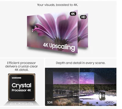 تلویزیون سامسونگ 65 اینچ u7000f اسمارت یکی از بهترین نوع پردازنده ها را در بین تلویزیون های جدید داراست که قادر بوده تا بهترین تصویر را در نهایت به نمایش بگذارد. مجهز به پردازنده Crystal Processor 4K میباشد و همان گونه که از نامش نیز مشخص است برای تلویزیون های کریستالی شرکت سامسونگ طراحی شده و در آن سری ها استفاده میشود. اگر بخواهیم کار اصلی پردازشگر مورد بحث را بیان کنیم بهبود وضوح تصویر بخصوص برای تصاویر قدیمی و با کیفیت پایین است. آن ها را تا سطح 4K ارتقا کیفیت میدهد. از دیگر قابلیت های این پردازنده بازسازی رنگ هاست. علاوه بر آن باعث کاهش دادن نویز تصویر میشود در نتیجه کنتراست را افزایش داده تصویر زیبا را به نمایش در می آورد. هر تصویر به دقت و با سرعت بالا پیش از ظاهر شدن بر روی نمایشگر تلویزیون از هر گونه ناخالصی و نویز تمیز میشوند. همچنین تصاویر سریع را به صورت روان و بدون تاری نمایش میدهد و برای مشاهده فیلم های اکشن و مسابقات و بازی ها مناسب است. اما این نکته را باید یاد داشت که پردازنده معجزه نمیکند و برای تصاویر که خیلی کم کیفیت هستند نمیتواند تصویر واضح و عالی نمایش دهد.