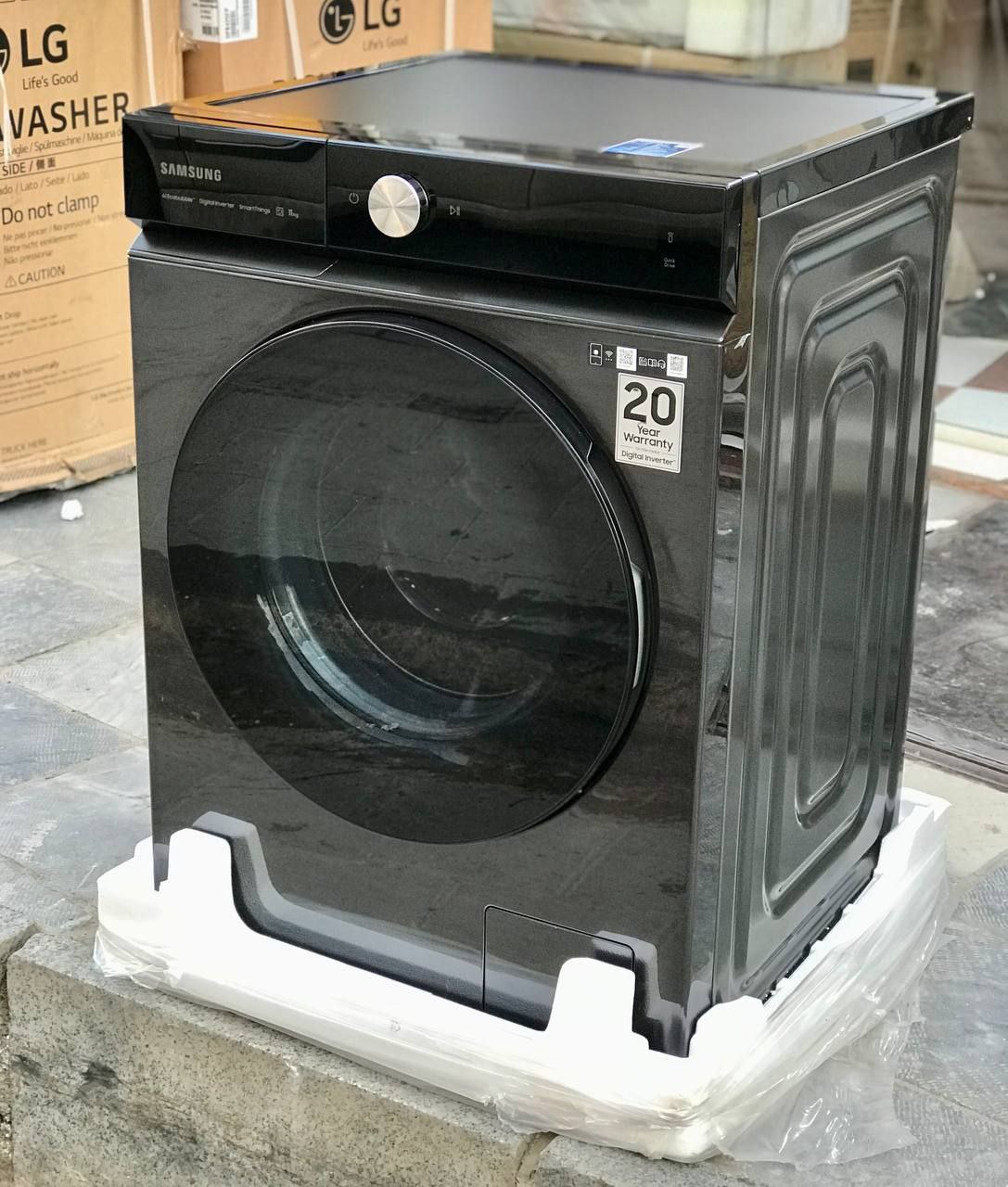 این جنس در برابر ضربات و حتی خط و خش سالم باقی می ماند. همچنین در برابر رطوبت و دیگر آسیب ها مقاومت بالایی دارد. دیگ این لباسشویی در وسط بدنه قرار گرفته و یک درب از جنس پلاستیک و شیشه دارد. این درب از طریق دسته ی مخصوص گوشه به راحتی باز و بسته می شود. اندازه و ابعاد آن به گونه ای طراحی شده که در هر متراژی به راحتی جای خواهد شد. در قسمت بالایی محصول سمت چپ کشو مخصوص مواد شوینده به چشم می خورد. نام سامسونگ با زیبایی خارق العاده ای بر روی این کشو حکاکی شده است.