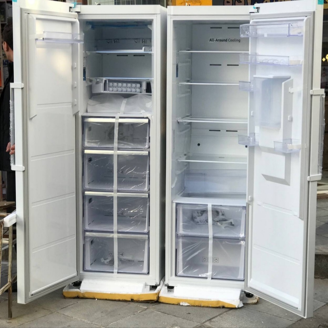 یخچال دوقلو سامسونگ RR39-RZ32 : شرکت سامسونگ یکی از معروف ترین کمپانی های جهان در حوزه لوازم خانگی است. این شرکت با تولیدات با کیفیت و بی نقص خود در هر خانه ای محصولاتی را به نام خود ثبت کرده است. یخچال ها به عنوان یکی از بخش های اساسی هر آشپزخانه از اهمیت بالایی برخوردارند. پس توجه به قابلیت و ویژگی های یخچال در هنگام خرید از اهمیت زیادی برخوردار است. اگه دارای یک خانواده پر جمعیت هستید و یا فکر می کنید فضای ذخیره سازی یخچال تان کوچک است و به یخچال بزرگتری نیاز دارید RR39-RZ32 سامسونگ می تواند به کمک شما بیاید. طراحی زیبای این محصول به راحتی با آشپزخانه شما هماهنگ می شود و به دلیل فضای بسیار زیادی که در اختیار شما قرار می دهد از شلوغی یخچال کاسته شده و هر چیزی دقیق در جای خود قرار می گیرد. بنابراین دیگر به باز ماندن زیاد درب نیازی نیست و در پیدا کردن مواد غذایی با مشکلی مواجه نمی شوید.