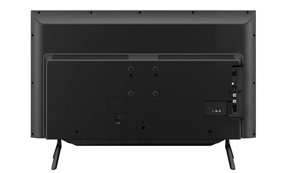 پایه های این وسیله بسیار متفاوت تر از سایر پایه ها به نظر می رسند. این پایه ها شکل V دارند و ارتفاع بالایی دارند. این ارتفاع به خوبی شکل بدنه و پایه ها را به نمایش می گذارد. اندازه ی صفحه نمایش آن نیز 43 اینچ بوده و از نوع LED ساخته شده است. دور تا دور این صفحه نمایش را قالب و لبه های ظریف فرا گرفته اند. نظم و انضباط قابل توجه این وسیله مربوط به پنل پشتی بوده که پورت های ارتباطی را در خود جای داده است. این صفحه LED دید گسترده را در انواع زاویه ها به وجود می آورد. کاربر می تواند این تلویزیون را جدا بر روی میز تلویزیون بر روی دیوار نیز نصب کند.