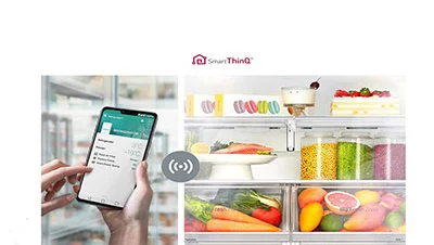 تشخیص هوشمند ال جی راهی سریع و آسان برای عیب یابی مشکلات است. کافی است با خط راهنمای LG تماس بگیرید و تلفن را روی دستگاه قرار دهید. سپس دستگاه با رایانه ای ارتباط برقرار می کند که تشخیص را در عرض چند ثانیه ایجاد می کند و یک راه حل فوری ارائه می دهد. با LG ThinQ (Wi-Fi) ، می توانید یخچال خود را با تلفن هوشمند خود کنترل و تشخیص دهید حتی زمانی که در خانه نیستید. به راحتی دمای یخچال را تنظیم کنید ، Express Freeze را کنترل کنید و یخچال خود را با لمس ساده روی تلفن هوشمند خود تشخیص دهید. ویژگی های کلیدی را با برنامه SmartThinQ smartphone در تلفن هوشمند خود کنترل کنید و اعلان های مهم را از هر کجا دریافت کنید. حتی با Google Assistant کار می کند تا بتوانید ویژگی های هوشمند را با صدای خود کنترل کنید. ذهن شما در سهولت فناوری ThinQ به شما این امکان را می دهد تا با استفاده از یک برنامه ساده تلفن هوشمند ، تعداد بیشماری از کارهای روزانه را متعادل کنید. همچنین با بهره مند بودن آن از عیب یابی یخچال با خبر می شوید. تنها کافیست این برنامه هوشمند را بروی تلفن خود وصل کنید و از هرجایی اعلان های SmartThinQ را مشاهده کنید و از عیب های یخچال باخبر شوید.