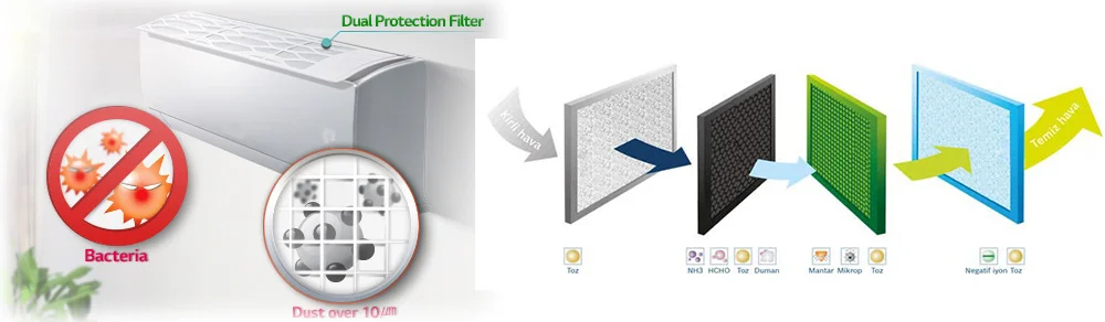 با افزایش میزان آلودگی و نیاز هر انسان به هوای پاک و عاری از هرگونه آلودگی به ویژه در افرادی که دارای بیماری های تنفسی و یا آسم می باشند می تواند فیلتر بهداشتی ۱ یک نکته اساسی باشد که باید در هنگام خرید و انتخاب کولر گازی به آن توجه نماییم اکثر کولر گازی های موجود در بازار دارای فیلتر بهداشتی می باشند کولر گازی ایستاده 30000 جنرال گلد سرد و گرم موتور T3 مدل GG-MF30 PLATINUM مجهز به یک فیلتر فوق العاده و عالی می باشد و می تواند تمامی گردوغبار ها و آلودگی های موجود در محیط را از بین ببرد و با استفاده از این فیلتر عالی می توانید یک هوای پاکیزه و عاری از هرگونه مواد بیماری زا را استشمام کنید ؛ این نوع فیلتر ضد قارچ و قابل شستشو بوده و به بهترین شکل ممکن ذرات ریز را نیز به خود جذب می کند. در ضمن این فیلتر بهداشتی توانایی جذب و از بین بردن انواع مختلفی از مواد بیماری زا مانند قارچ انگل را تا ۹۹.۹۹% دارد و شما می توانید از هوای پاکیزه و کاملاً بهداشتی و نهایت لذت را ببرید ، و سلامتی را برای خود و عزیزانتان به ارمغان آورید. به لطف این فیلتر کولرگازی GG-MF30 یک گزینه بسیار شایسته برای افراد مسن ، کودکان و افراد آلرژیک و حساس به شمار می رود.