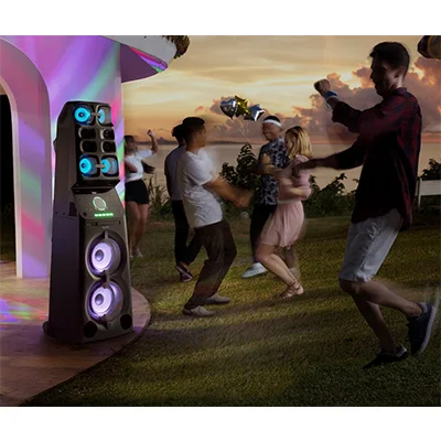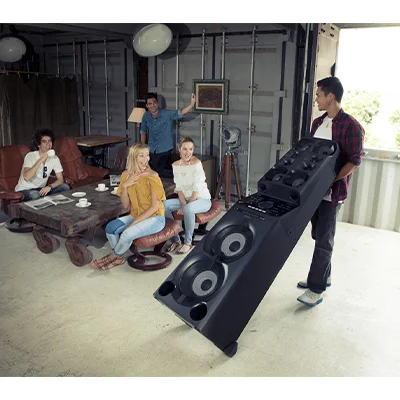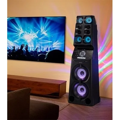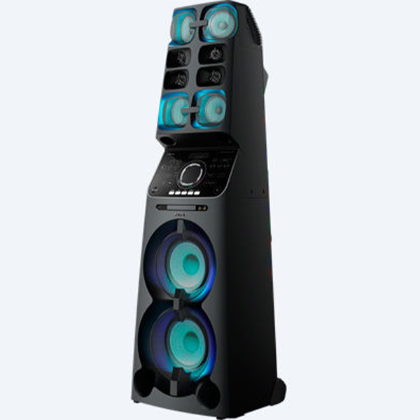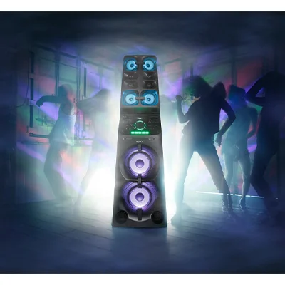 سیستم صوتی شیک V90 سونی 2400 وات مدل MHC _V90DW حداکثر 10 بلندگوی سازگار را با Wireless Party Chain وصل کنید تا قدرت صوتی بیشتری داشته باشید. همه اینها از طریق Wi-Fi انجام می شود ، بنابراین نیازی به استفاده از کابل اتصال ندارید. با سیستم صوتی خانگی MHC-V90DW مهمانی خود را برای همه سرگرم کنید. ده بلندگو حجم زیادی ایجاد می کنند و صدای گسترده آنها به این معنی است که مردم می توانند موسیقی را از هر زاویه ای بشنوند. برای تکمیل صداهای مهمانی ، چراغ های داخلی را روشن کنید. همچنین سیستم صوتی شیک V90 سونی 2400 وات مدل MHC _V90DW بلندگوهای زاویه دار در بالای سیستم صدا را بر روی جمعیت پخش می کنند ، به کمک یک کابینت پشت باز برای پخش صدای بیشتر. هر یک از 10 بلندگو دارای طرحی به سبک بوق هستند که باعث می شود صدا بیشتر حرکت کند تا همه در مهمانی بتوانند از موسیقی لذت ببرند. همچنین طراحی بلند متمایز به لطف موقعیت این ارتفاع ، بلندگوها در سطح گوش هستند. بنابراین همه در مهمانی می توانند از بهترین صدا با احساس موسیقی در سراسر بدن لذت ببرند. چراغ های رنگی مهمانی از طریق لنز می درخشند تا نور را در پشت MHC-V90DW با الگوی دیسکو پخش کنند. در جلو ، نورهای روشن در هر بلندگو فضای مهمانی مهیج را ایجاد می کند. تماشای آنها برای همزن با کف رقص به سبک باشگاه بسیار مناسب است.