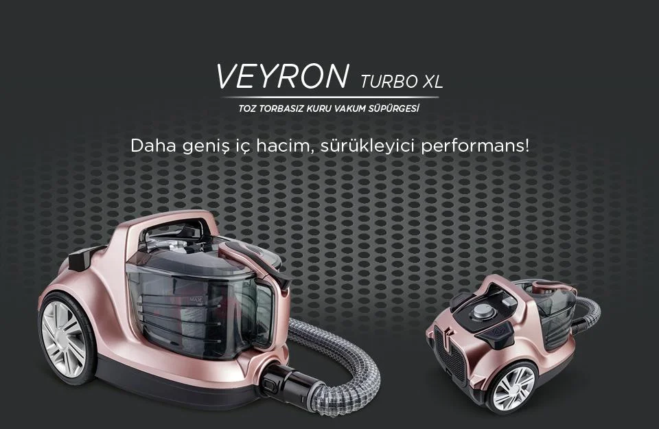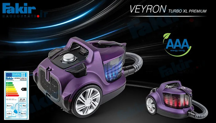 جاروبرقی VEYRON TURBO XL PREMIUM ساخته شده توسط برند آلمانی فکر آن دسته جاروبرقی های بدون کیسه می باشد و به جای آن مخزنی را برای جمع آوری گرد و غبار قرار داده اند ؛ که ظرفیت آن برابر ۲ لیتر می باشد و قادر است سیستم هشدار دهنده نور در داخل محفظه ، نشانگر گروه فیلترهای جاروبرقی است. در هنگام عملکرد کامل ، چراغ آبی ، در صورت پر یا مسدود شدن گروه فیلتر محفظه ، چراغ قرمز آن روشن می شود حجم زیادی از آشغال ها را در خود ذخیره سازی نماید اگر شما اقدام به روش نمودن دستگاه کنید همزمان با آن چراغ های ال ای دی که با رنگ آبی هستند روشن می شوند اما به محض پر بودن مخزن این لامپ ها به رنگ قرمز تبدیل شده و به کاربر اطلاع می دهد ، تا اقدام به خالی نمودن مخزن کند جدا کردن مخزن از جاروبرقی کار بسیار ساده ای می باشد و هر استفاده کننده ای قادر است در کمترین زمان ممکن اقدام به تخلیه آن نماید و با این کار در وقت و زمان شما صرفه جویی به عمل می آورد.