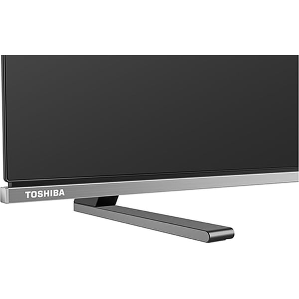 بدنه ی آن مل از رنگ مشکی یک دست بهره برده که تناسب بیشتری را در محیط ایجاد می کند. همچنین جنس بدنه نیز پلاستیک فشرده محکم بوده که ایمنی و استحکام را در طول استفاده ایجاد می کند. شرکت توشیبا اندازه ی صفحه نمایش را هم از 65 اینچ در نظر گرفته است. این اندازه برای هر محیطی مناسب و عالی به شمار می رود. اطراف صفحه نمایش شامل لبه و قاب بسیار ظریفی بوده که زیبایی محصول را بیشتر نشان می دهد. اما لبه ی پایینی به رنگ نقره ای و از جنس استیل ساخته شده که نمایی جدید را خلق کرده است.