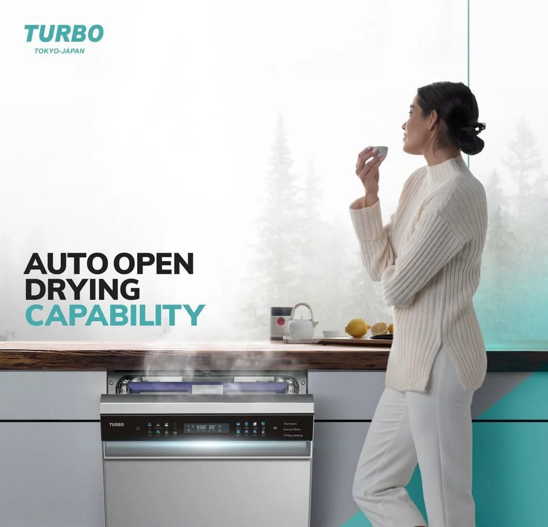 وجود قابلیت و امکانات متنوع در این ظرفشویی آن را به یک محصول بسیار کاربردی و آسان جهت استفاده تبدیل کرده است. شاید یکی از مهمترین قابلیتهای این ظرفشویی توربو وجود قابلیت خشک کن می باشد که به یکی از محبوب ترین قابلیت ها تبدیل شده است. فناوری EXTRA DRYING که خشک کن هم می گویند به صورت خودکار در پایان چرخه شست و شو فعال خواهد شد و ظروفی کاملاً خشک را و با استفاده از حرارت و هوای گرم کمک میکند تا ظروف کاملاً خشک شود. از فواید این فناوری این است که دیگر زمانی را صرف خشک کردن ظروف نخواهید کرد و به محض اینکه آنها را خارج کنید به سرعت قابلیت استفاده را خواهند داشت. همچنین این فناوری از ایجاد لکه بر روی ظروف جلوگیری خواهد کرد. از جهتی دیگر این ظرفشویی با بهره مندی از DUAL ZONE WASH می تواند شستشوی دوگانه بسیار کاربردی را ارائه دهد. این قابلیت DUAL ZONE کمک می کند تا در یک چرخه شستشو، ظروف را به دو دسته برای شستشو تقسیم کنید. به عبارتی دیگر ظروفی که خیلی چرب و کثیف هستند در قسمت پایین و ظروفی که چربی کمتری را دارند در قسمت بالا قرار دهید بدون اینکه چرخه شستشوی جداگانهای را اجرا کنید. شستشوی دوگانه در این ظرفشویی به این گونه است که ظروفی که چربی بیشتری دارند و در قسمت پایینی قرار گرفته اند با آب داغ شستشو داده می شوند و ظروفی که چربی کمتری دارند و در قسمت بالا قرار گرفته اند با آب معمولیتری شستشو داده میشوند.