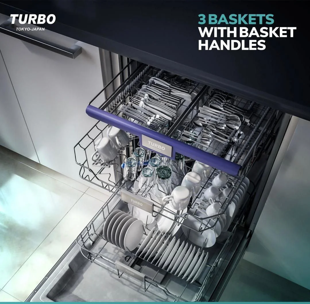 همانطور که اشاره کردیم این ظرفشویی یک محصول بسیار کاربردی میباشد که با برخورداری از ظرفیت 15 نفره، می تواند از پس شستشوی ظروف در مهمانی ها بر آید. در حالت کلی دیزاین این ظرفشویی بسیار حرفهای و بروز می باشد و به راحتی با ظرفشویی های ال جی قابل قیاس هستند. طراحی قسمت داخلی نیز به همان اندازه ظاهر آن نیز مهم میباشد. توربو این ظرفشویی را در سه سبد بزرگ عرضه بازار کرده است که به راحتی میتوانید ظروف مورد نظر خود را در آن جایگیری کنید. نکته خوب در مورد این قفسه ها این است که به راحتی قابلیت تنظیم ارتفاع را دارند و با توجه به ظروف مورد نظر خود میتوانید ارتفاع قفسهها را تنظیم کنید. جنس این سبدها از استیل ضد زنگ می باشند و کاملا در برابر زنگ زدگی مقاوم هستند. وجود فناوری Innowash plus سبب شده است تا با ایجاد سوراخ هایی در پایین قفسه، آب به راحتی در بین ظروف عبور می کند و تمیز کنندگی عالی را ارائه دهد.