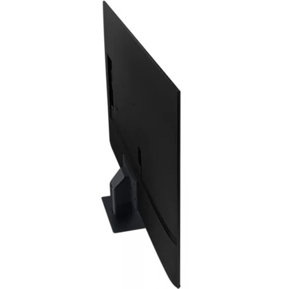 تلویزیون 85 اینچ سامسونگ کیولد 2021 اسمارت 4k مدل 85Q77A به طور کلی صفحه نمایش فوق العاده نازک جذابی دارد. برای ظرافت بیشتر، یک قاب پلاستیکی مشکی نازک در اطراف لبه صفحه نمایش وجود دارد. طراحی شیک Slim اصلی ترین بخش Q77A است. پلاستیک Sand Black "Narrow Neck Plate" در زیر مرکز صفحه نمایش قرار دارد. این به تلویزیون اجازه می دهد تا در محدوده کوچکتری از اندازه های میز یا کابینت نسبت به پایه های لبه رایج امروزی قرار گیرد. کابل برق به پشت صفحه نمایش متصل می شود. برای اینکه کابل های تخت از دید دور نشوند، پشت پلاستیکی گرد دارای کانال هایی برای مسیریابی آنها است. اتصالات ورودی در یک شکاف با یک بریدگی در سمت راست صفحه نمایش قرار دارند. با توجه به طراحی «Stylish Slim» به کار رفته در تلویزیون های سامسونگ Q77A، روی دیوار بسیار زیبا به نظر می رسند. اگر قصد دارید تلویزیون را روی دیواری در اتاقی نصب کنید که مردم تمایل دارند تصویر را از زوایای مختلف ببینند، پس این واقعیت ارزش در نظر گرفتن را دارد. کنتراست کلی به نظر می رسد که کمی از بین رفته است، به خصوص در مناطق روشن صفحه هنگام مشاهده محتوای SDR. محتوای استودیویی مانند بولتن های خبری، کمدیها و موارد مشابه کنتراست بسیار بیشتری دارند.