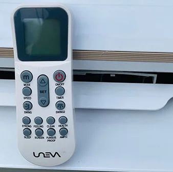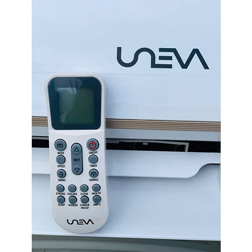 کولر گازی یونیوا 24000 اینورتر فانتوم مدل UNAS24 FANTOM-5 T3 دارای ریموت کنترل است که دارای کلیدهایی متعدد و خوش کارکرد میباشد. هر کلید به صورت منظم در کنار دیگری قرار داده شده و نام هر کلید به خوبی در کنار آن درج شده است تا کاربران به راحتی بتوانند کارایی آن را متوجه شوند و در صورت نیاز اثدام به فشردن کلید مورد نظر نموده و آن را فعال کنند. ریموت کنترل همراه با کولر گازی یونیوا مجهز به صفحه نمایشگر LCD است. اطلاعات دمایی و عملکرد فعال توسط این نمایشگر قابل مشاهده هستند.