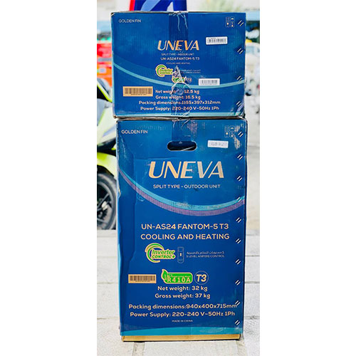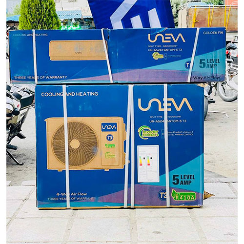 کولر گازی یونیوا 24000 اینورتر فانتوم T3 نهایت قدرت در سرمایش برای مناطق گرمسیری است. شرکت یونیوا ( Uneva ) در ساخت کولر گازی یکی از شرکت های مطرح محسوب میشود. نمونه ای از تولیدات عالی این برند این کولر گازی اینورتر ۲۴۰۰۰ است. از نظر کارایی بی نظیر بوده و طراحی زیبای فانتوم نیز دارد. کولر گازی ۲۴۰۰۰ اینورتر یونیوا از کمپرسور T3 بهره مند میباشد و برای شرایط سخت و مناطق گرمسیری با دمای محیطی بالای ۵۵ درجه ساخته شده و بهترین کارایی را دارد. از نوع دو عملکرده است و قابلیت سرمایش و گرمایش دارد. از دیگر خصوصیات این کولر گازی یونیوا به قابلیت اینورتر آن میتوان اشاره کرد که این قابلیت به صورت چشم گیری باعث کاهش مصرف برق دستگاه شده است. همچنین سبب ایجاد هوایی مطبوع، عملکرد پایدار و بدون صدا و بدون نوسان دمایی خواهد بود. بدنه ای که برای این کولر گازی یونیوا طراحی شده و برای ان ساخته اند مقاومت بالایی داشته و زیبا است. از مواد با کیفیت و مرغوب در آن استفاده شده است. در زمان کار کولر گازی یونیوا صدایی بسیار کم از آن به گوش افراد حاضر در اتاق خواهد رسید و آرامش افراد را بر هم نمیزند. مصرف برق ان در رده پایینی میباشد و برچسب انرژی ++A را دریافت کرده است.