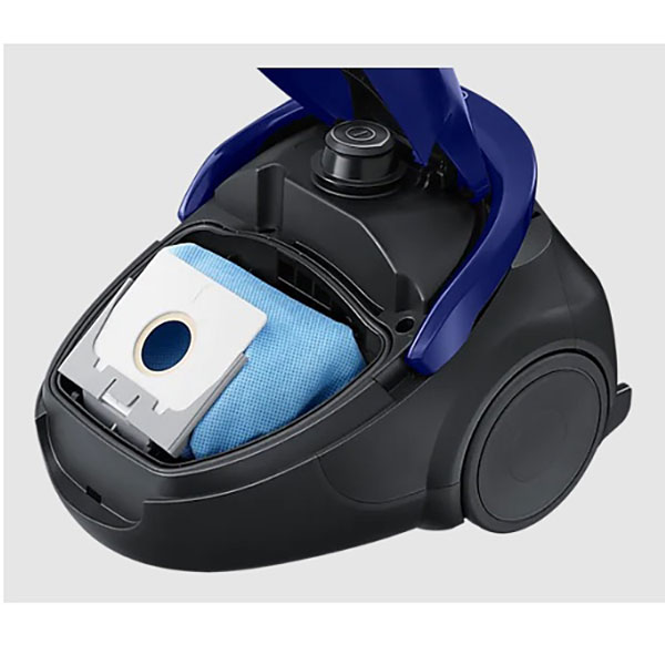 شرکت سامسونگ میزان ظرفیتی را که برای کیسه جارو برقی 255 سامسونگ 2000 وات کیسه ای مدل VC20 M255AWB در نظر گرفته است برابر 2/5 لیتر می باشد ، که بدون اینکه نگران پر شدن زود به هنگام کیسه باشید می توانید حجم وسیعی از خانه خود را با آن جارو بزنید. با توجه کردن به دسته آن می فهمید که مخزن EZ clean بر روی دسته جارو برقی تعبیه شده است و حجم زیادی از گرد و غبار را در خود جای می دهد ؛ کارایی این مخزن به گونه است که آشغال های بزرگ و کوچک را تفکیک نموده و تنها ضایعات بزرگ وارد کیسه دستگاه خواهد شد اهمیت این نکته این است که ؛ با ورود ذرات ریز به درون کیسه قدرت مکش آن پایین نمی آید و می تواند منجر به افزایش طول عمر دستگاه شود و با خرید و انتخاب این مدل جارو برقی از نظر اقتصادی کمک زیادی را به خود کرده اید. در ضمن وجود سیستم ایمنی که کمپانی سامسونگ برای آن در نظر گرفته است منجر می شود تا هنگامی که کیسه در جای خود قرار نگرفته دستگاه شما روشن نمی شود. درب ایمنی تضمین می کند که هرگز فراموش نکنید که کیسه را در جای خود قرار دهید: اگر داخل آن خالی باشد، به سادگی بسته نمی شود. هنگامی که کیسه نصب نمی شود ، نگهدارنده از بسته شدن درب آن جلوگیری می کند. نیروهای گریز از مرکز به کار رفته در فیلتر منحصر به فرد EZClean Cyclone زباله های درشت را جدا می کند. آیا دوست دارید یک جاروبرقی قدرتمند داشته باشید که به راحتی در خانه حرکت کنید؟ تمام این الزامات توسط جاروبرقی سبک و قابل مانور سامسونگ VC2500 با کیسه گرد و غبار برآورده می شود. قدرت مکش بالا تمیز کردن کامل فرش و سطوح سخت را تضمین می کند. از آنجایی که فقط ذرات ریز گرد و غبار وارد کیسه گرد و غبار می شود ، قدرت مکش 4 برابر بیشتر از جارو برقی های معمولی سامسونگ ثابت می ماند. به لطف فیلتر EZClean Cyclone ، نیازی به تعویض مکرر کیسه های گرد و غبار ندارید که باعث صرفه جویی در هزینه ها می شود.