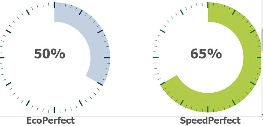 SpeedPerfect یک ویژگی ویژه است که برای روزهایی که هر لحظه اهمیت دارد طراحی شده است. به لطف SpeedPerfect ، می توانید زمان شستشو را تا 65٪ کاهش دهید *. این گزینه را می توان در ارتباط با اکثر برنامه ها، صرف نظر از اندازه بار و نوع منسوجات استفاده کرد. به عنوان مثال با انتخاب برنامه Mix با گزینه SpeedPerfect می توانید تا 4 کیلوگرم از منسوجات مختلف را تنها در 41 دقیقه بشویید * تفاوت بین برنامه Synthetics 40 درجه سانتی گراد و مدت زمان اجرای همان برنامه در ترکیب با گزینه SpeedPerfect از آنجایی که دقیقه ها متفاوت است، ماشین های لباسشویی با ویژگی SpeedPerfect زمان شستشو را تا 65%* کاهش می دهند بدون اینکه بر نتیجه تمیز کردن کامل تأثیر بگذارند. می توانید از SpeedPerfect با برنامه های دیگر ، با هر میزان لباسشویی و با هر نوع پارچه ای استفاده کنید. به عنوان مثال ، هنگامی که تنظیم برنامه مخلوط را با SpeedPerfect انتخاب می کنید ، می توانید 4 کیلوگرم لباس های مخلوط را در 46 دقیقه بشویید.