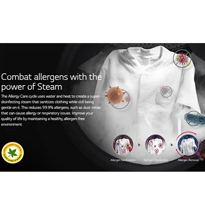 99.9 Al آلرژن ها کاهش یافته است با استفاده از فناوری TrueSteam Al Allergy Care ، Steam Refresh و Steam Softener را فعال می کند. با حفظ یک محیط سالم و عاری از حساسیت ، کیفیت زندگی خود را ارتقا دهید. پروسه ی شستشو مناسب برای پارچه که یک برنامه شستشو انتخاب کنید و فناوری 6 Motion Direct Drive درام شستشو را در جهات متعدد حرکت می دهد و به پارچه ها در هنگام تمیزکردن لباس ها مراقبت مناسب می کند. قابلیت ارتعاش کمتر ، نویز کمتر در ال جی نه تنها یک بلکه دو موتور Inverter Direct Drive با کارایی بالا عملکرد شستشو را افزایش می دهند اما بدون سر و صدا. فناوری Inverter DD از قطعات متحرک کمتری استفاده می کند که باعث کاهش ارتعاشات و افزایش دوام می شود. به علاوه ، موتورها انرژی کمتری را هدر می دهند و مصرف برق را کاهش می دهند.ماشین لباسشویی و خشک کن در یک دستگاه بی نظیر که بسیار عالی برای شما انجام می دهد. ماشین لباسشویی ال جی یکی دیگر از فناوری های پیشرو لوازم خانگی ما است. در خانه خود فضای ذخیره کنید و فضای بیشتری برای خانواده خود ایجاد کنید.