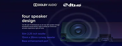 نه تنها برند شیائومی بلکه تمامی برند های معروف و موفق جهان تلاش دارند علاوه بر کارایی فوق العاده تصویر به میزان صدای عالی و بدون عیب ان نیز توچه کنند ، این مدل تلویزیون از میزان صدای 20 واتی بهره جسته است این میزان صدا در این تلویزیون مانند مدل های قبل خود به خوبی ارائه می شود این تلویزیون از میزان نویز بسیار عالی بهره گرفته است در آن صدای DTS همان صدای همه جانبه OTS می باشد. کیفیت صدای این مدل تلویزیون آنقدر بالا است که انگار بیننده در عمق تصاویر قرار دارد. فناوری دالبی هم مانند DTS می باشد اما از فرمت های جدید تر و بهتری پشتیبانی شده است. این تلویزیون نیز مانند سایر تلویزیون های موجود در بازار از دو کانال 10 واتی که جمعا 20 وات می باشد استفاده شده است و ماربر می تواند از صدای با کیفیت بلوری ویا کنسول های بازی پخش می کنند برخودار شوید.